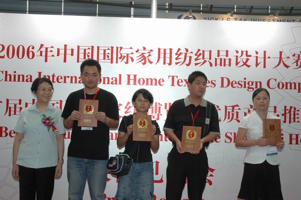 中国贸促会纺织行业分会副会长富荣沛(左二)为获奖者颁奖