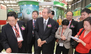 中国纺织工业协会副会长许坤元在主办单位领导陪同下参观展会
