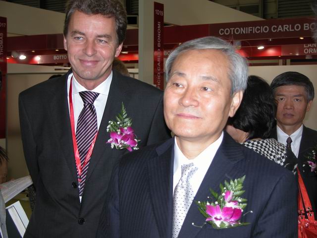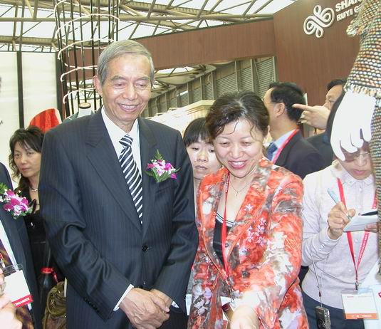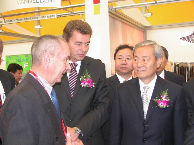 中国纺织工业协会杜钰洲会长与外国嘉宾参观面料展