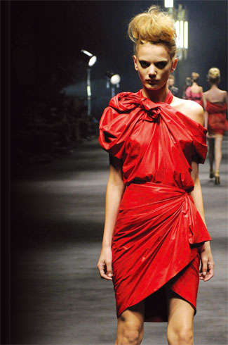 红色似乎已经沉寂很久了,但自从各位女明星在过去一两年里纷纷以火红色造型出其不意地获得好评以来,这种穿起来十分“惊险”的颜色在2010 年春夏大爆发似地席卷而来。说它“惊险”是因为穿得不好,红色会立即让你成为人群中最惹人注目的笑话,不过当然,风险系数也意味着成功必然会更令人惊艳。Donna Karan 和Lanvin 的红色连身裙是十分安全的款式,Lanvin 有迷人的褶皱细节,Donna Karan 模特好看的麦色皮肤印证了并不是苍白皮肤才可以穿火红色,深肤色姑娘们穿起来更有异域感。Chanel 用经典套装来承载红色,有了黑色、白色以及灰色迷你裙套装的女士们当然应该投资一套更适合春夏穿着的。3.1 Phillip Lim 的双排扣束腰风衣以及同色短裤虽然款式常见,但搭配上本季热门而又不常用在短风衣上的大红色就成为值得模仿的造型。本季的Versus 也值得关注,斜肩设计和镂空效果,灵感来自于经典的Versace 回形针细节设计本次也在红色连身裙中出现!