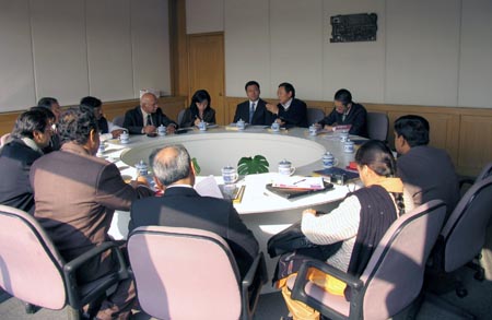 11月10日上午,中国纺织工业协会副秘书长、纺织贸促会副会长徐迎新及纺织贸促会副秘书长梁鹏程与印度卡纳塔克省工商业代表团一行12人进行了会谈。双方就中印两国纺织服装业发展现状以及我国纺织服装业在卡纳塔克省的投资前景进行了交流和沟通。