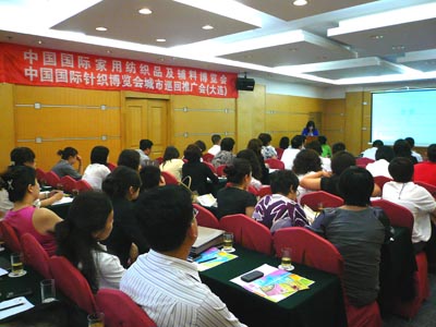 6月18日,由中国国际贸促会纺织行业分会、中国家用纺织品行业协会与中国商业联合会联合举办的“第十六届中国国际家用纺织品及辅料博览会/中国国际针织博览会城市推广会”在美丽的海滨城市大连成功举行。来自东北地区及北京地区近30家大型百货商场和连锁超市的家纺和针织采购主管参加了本次路演推介活动,其中大商、银座、兴隆、友谊、新玛特、乐购、华联等商业知名单位也悉数到会。