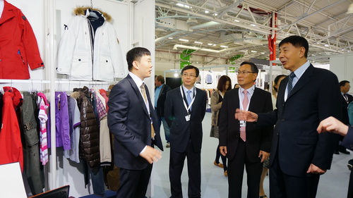 开幕当天上午,中国纺织工业联合会副会长张延恺,会长助理、中国国际贸易促进委员会纺织行业分会常务副会长徐迎新,中国国际贸易促进委员会纺织行业分会副会长林云峰等领导,在法兰克福展览(法国)有限公司总裁麦尚朋的陪同下参观调研展会,并与参展企业进行了深入交流。