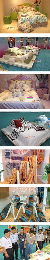 走进博览会的4号馆,惊喜地发现满目皆是杭州字样:杭州!杭州!还是杭州! 一了解,原来是杭州市余杭区作为中国纺织工业协会和中国家用纺织品行业协会联合授牌的“中国布艺名城”在本届展馆博览会为了“打造家纺区域品牌;推进产业集群发展”,这次以集团军作战的方式,不仅包下了整个4号展馆,而且在E1馆还展出了自己企业的精品,充分展示了中国布艺名城的强大实力。
