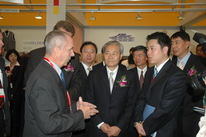 中国纺织工业协会会长杜钰洲在展会主办单位领导的陪同下参观展会