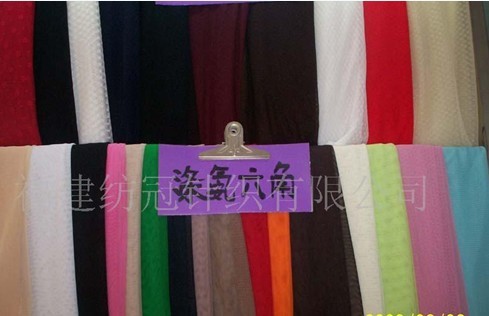 公司专业生产39眼锦氨四面弹网布、40D48F朱罗纱,工字型氨纶网,尼龙透明纱网,超薄形氨纶网,50/72低弹点点花,28眼加密型婚纱网,超薄型锦纶高弹加密网,170-2副-33眼涤氨网,42眼加密四梳涤纶,505低弹网眼布,6420复丝网布,50D、72F涤氨韩国网,20D时装平纹布,三梳满天星面料,弹性印花网眼,72F弹力网布,30D经编面料:210D锦氨四梳网眼布,40D高弹锦纶底布,50D涤氨四角、70140锦氨六角、八角,菱形,正方形,工字形,桃形,针空网眼。产品主要用于服装、刺绣、婚纱、胸罩、圆网印花、礼品、婚礼礼服、贝贝佳。成分:真丝,全棉,涤纶,锦纶,氨纶等众多产品,现已向上游化纤产品即加弹丝领域发展和下游产品深加工开等领域深入,可根据客户来样,定做各种款式的婚纱用的网布,并可染成各种色彩,各种幅宽,各种密度,环保无毒型,质量达到国家标准。本厂已有多年的生产历史,现是港台十多家婚纱厂家的直接生产供应商,信誉良好,并有足够 的技术进行相关布样的开发。请联系。