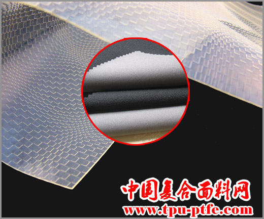 聚四氟乙烯防水透湿微孔膜是经特殊工艺经双向拉伸制成的,膜表面每平方英寸能达到几十亿个微孔,每个微孔直径(0.1um-0.5um)小于水分子中最小的轻雾的最小值(20um-100un),而远大于水蒸气分子直径(0.0003um-0.0004um),可以使水蒸气通过而水滴不能通过,利用这种微孔结构可达到优秀的防水透湿功能;另外因为该孔极度细小和纵向不规格的弯曲排列,使风不能透过,从而又具有防风和保暖性好等特点。该膜自问世以来经过不断改进,在PTFE薄膜上进行特殊处理,其牢固度和持久度大为提高,经过与其他面料复合后,广泛应用于军的服装、医用服装、休闲服装,消防、防生化、防毒、浸水作业等特种防护服,户外运动服装、鞋帽、手套等辅料以及睡袋、帐篷等材料。