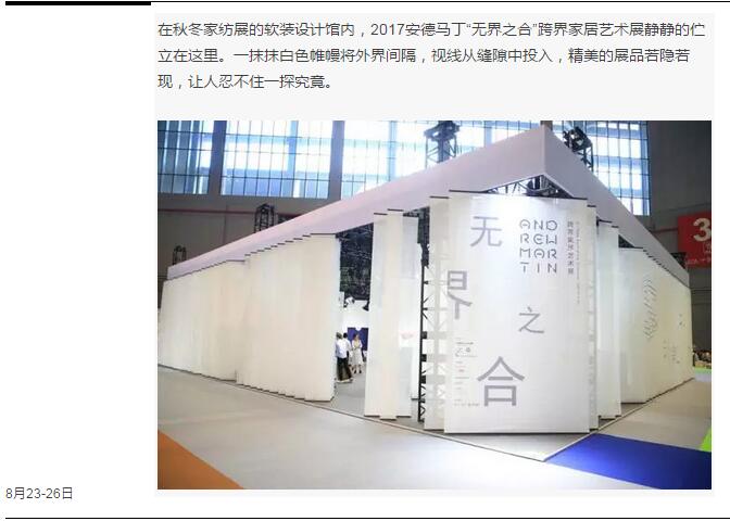 您现在的位置是:首页 > 要闻 “无界之合”跨界家居艺术展开启神秘面纱 来源:纺织贸促会官微 发布日期:2017-08-25 字体: 【小】 【中】 【大】 2017“无界之合”跨界家居艺术展汇集了来自室内设计、建筑设计、服装设计、艺术等近40位设计精英,以“无界之合”的概念,通过具象的家具、艺术陈设展示,表达对新家居生活方式的品位和理解。 分享: 热门文章: 2025intertextile春夏 | “友礼”同享齐观展... [2025-02-19] 2024年我国纺织行业经济运行总体平稳 [2025-02-17] 聚焦绿色智慧融合 展示产业用纺织品新趋势 [2025-02-11] 响应政策 落实服务 | PH Value义乌展全力“备战”中 [2025-02-11] 【亮星季】第一期正式开启 | 商贸先行,品质好礼享不停 [2025-02-10] 展会直通车