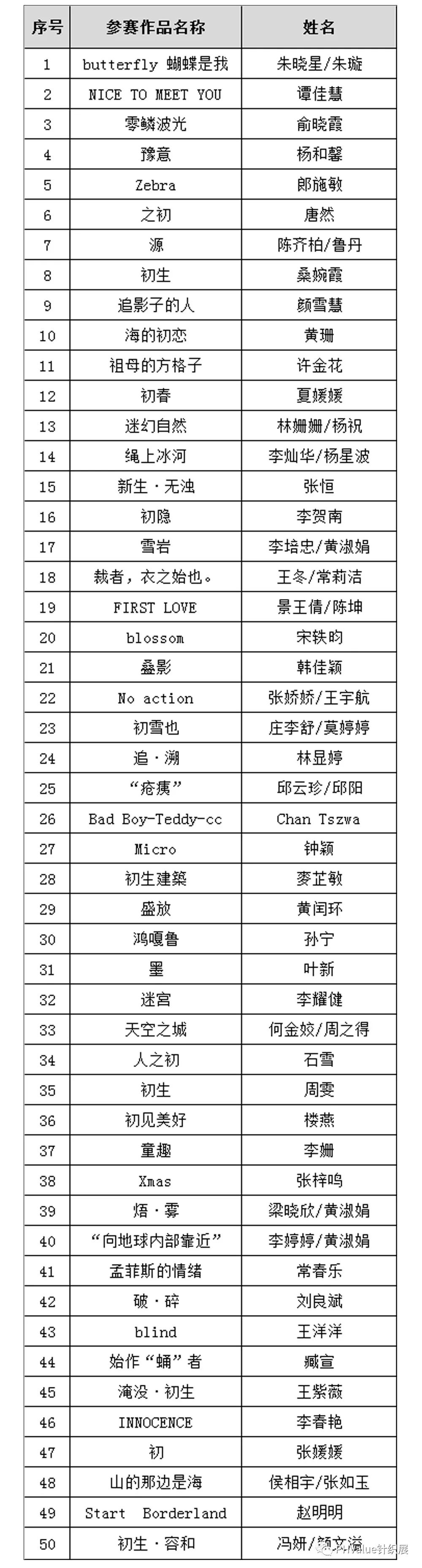 经过本次初评,以下50组优秀作品获得入围奖。接下来,经过再次的严格筛选,将有20组作品进入最终决赛。进入决赛的20组作品将于近期公布,敬请期待!