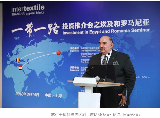 此次推介会邀请了埃及苏伊士运河经济区副主席Mahfouz M.T. Marzouk、中非泰达投资股份有限公司副总经理李代新、罗马尼亚驻上海总领事馆总领事Aurelian Neagu分别介绍埃及、罗马尼亚纺织服装业的投资政策与环境,以及埃及苏伊士运河经济区与中埃·泰达苏伊士经贸合作区的最新近况和发展蓝图。