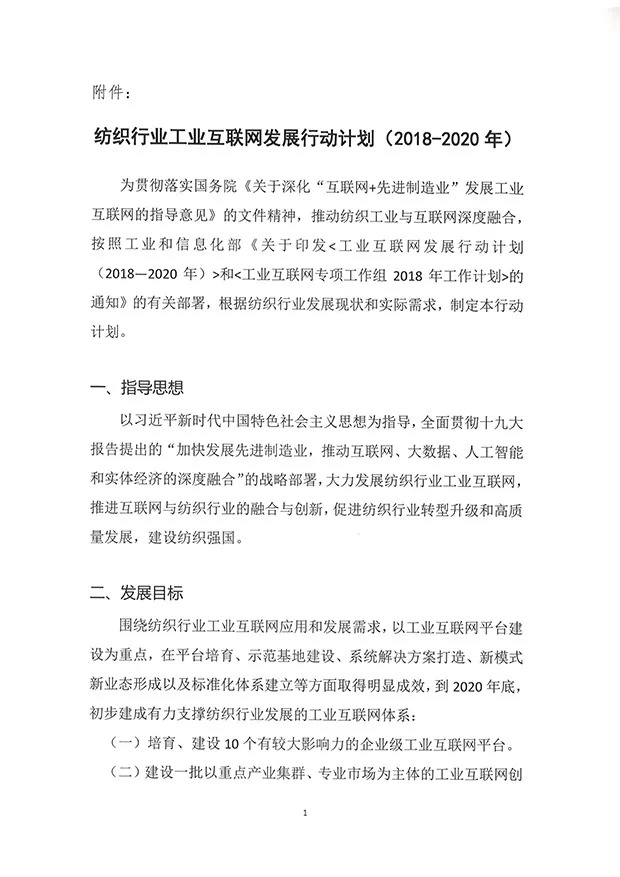 中纺联发布《纺织行业工业互联网发展行动计划(2018-2020年)》