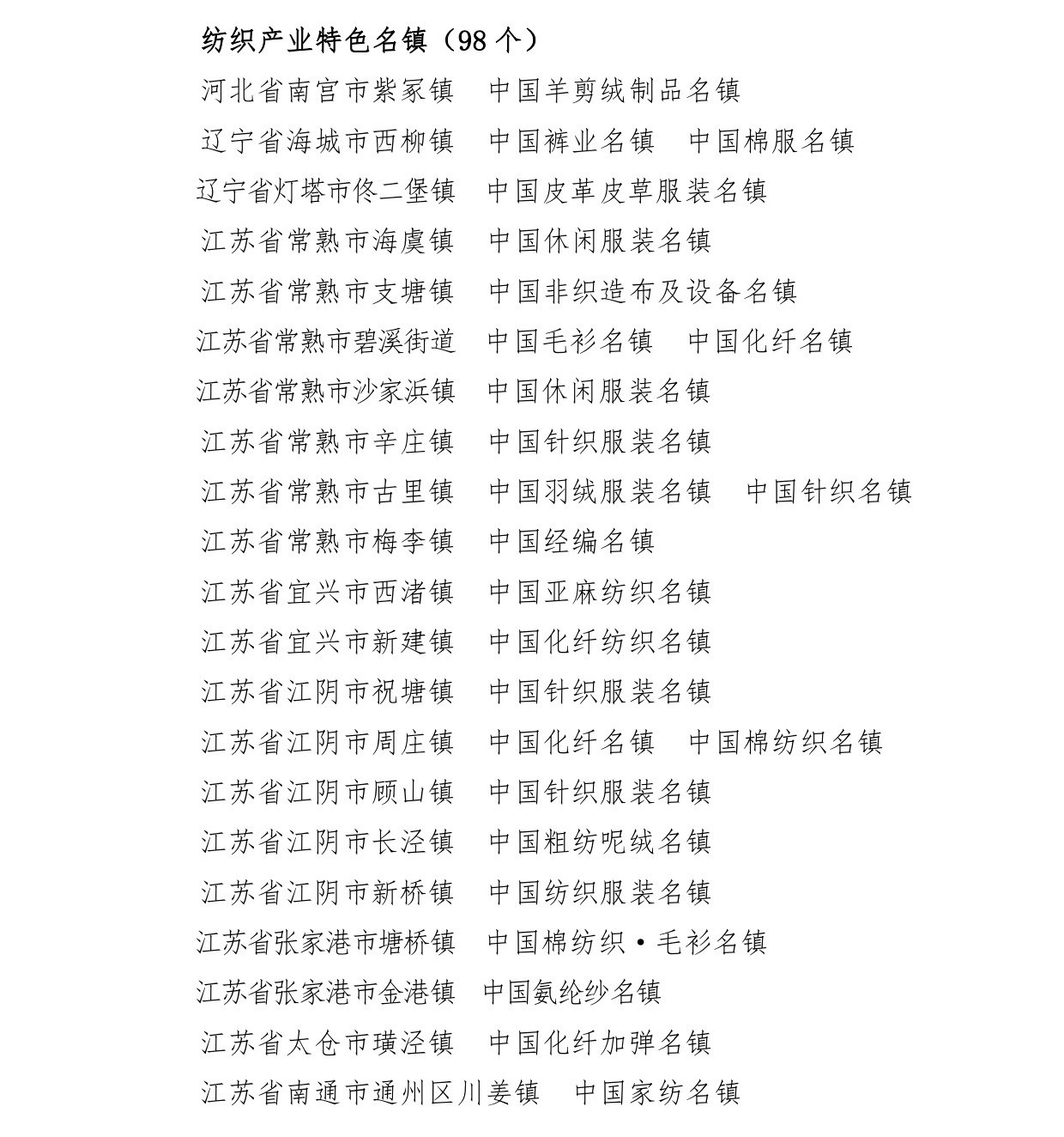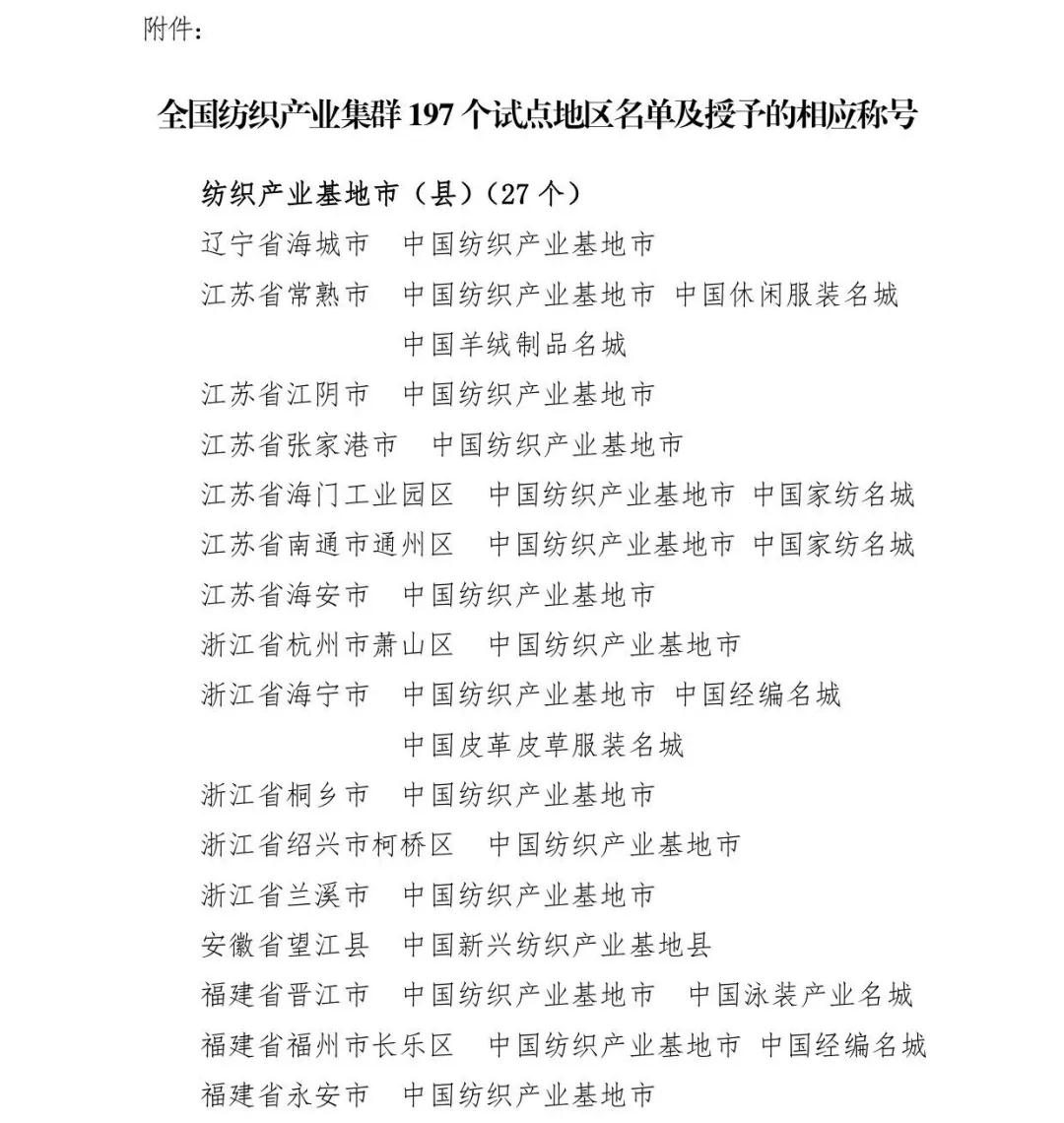 中纺联副会长杨纪朝宣读“关于确定辽宁省海城市等197个地区为全国纺织产业集群试点地区的决定”并颁奖。