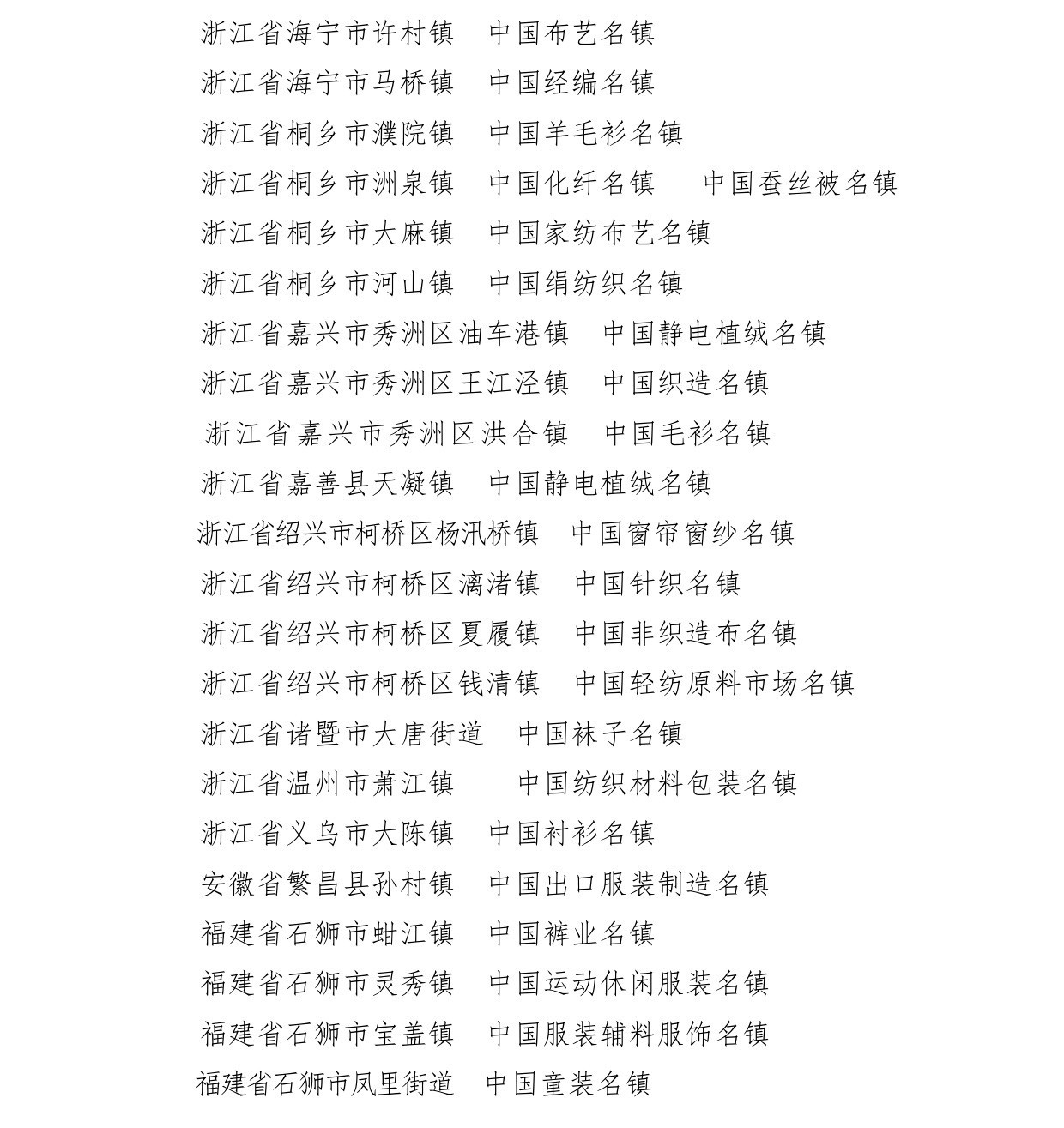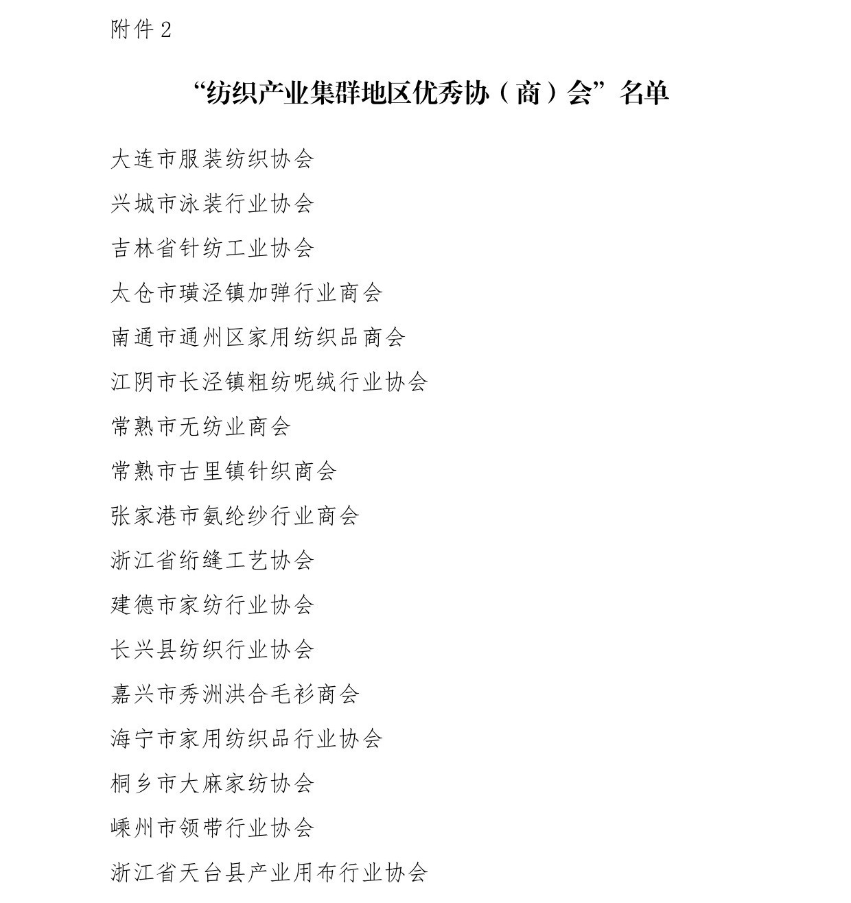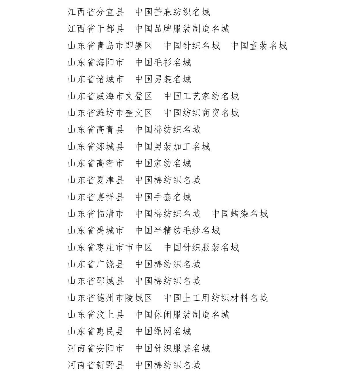 会议还为辽宁省海城市等197个纺织产业集群试点地区授牌。确定山东省昌乐县等七个地区为纺织产业集群试点地区并授牌。颁发“集群地区纺织产业发展服务优秀单位奖”、“纺织产业集群试点工作推动优秀单位奖”。颁发“第八届全国纺织行业管理创新成果奖”。颁发“2019年度十大类纺织创新产品奖”。颁发“2019年度中国纺织工业联合会产品开发贡献奖”。