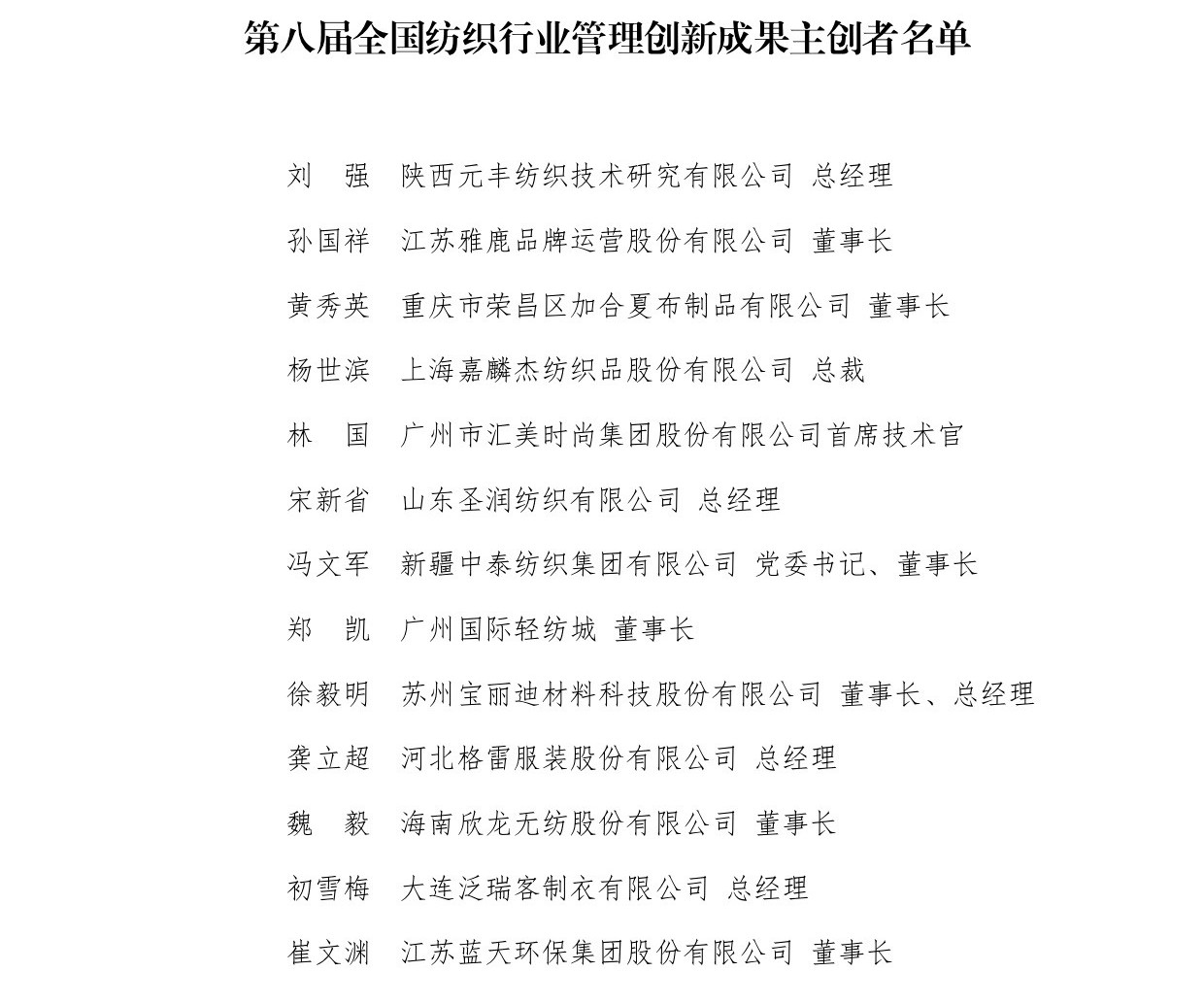 中纺联副会长徐迎新宣读“关于发布推广第八届全国纺织行业管理创新成果的决定”并颁奖。