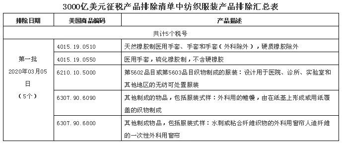 您现在的位置是:首页 > 要闻 含纺织服装5个税号,美国发布3000亿美元征税产品首批排除清单 来源:中国纺织品进出口商会 发布日期:2020-03-10 字体: 【小】 【中】 【大】 分享: 热门文章: 2025intertextile春夏 | “友礼”同享齐观展... [2025-02-19] 2024年我国纺织行业经济运行总体平稳 [2025-02-17] 聚焦绿色智慧融合 展示产业用纺织品新趋势 [2025-02-11] 响应政策 落实服务 | PH Value义乌展全力“备战”中 [2025-02-11] 【亮星季】第一期正式开启 | 商贸先行,品质好礼享不停 [2025-02-10] 展会直通车