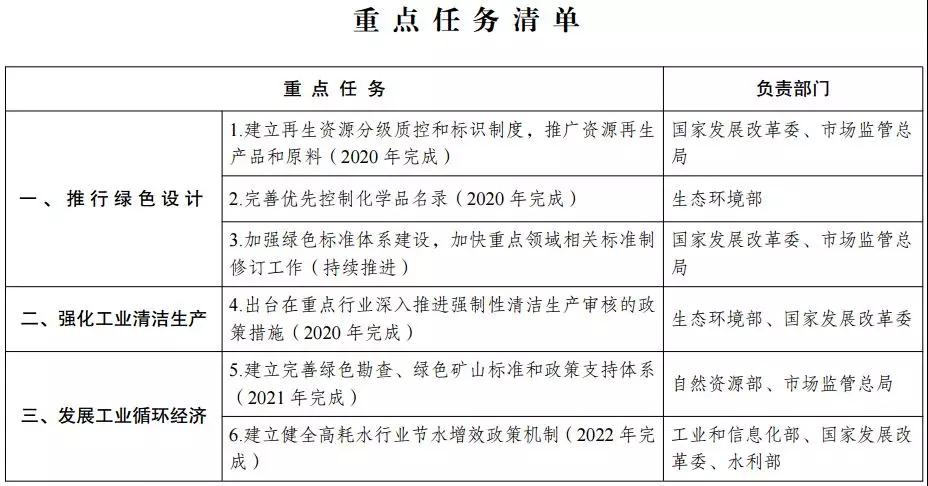 (三)推行绿色设计。健全推行绿色设计的政策机制。建立再生资源分级质控和标识制度,推广资源再生产品和原料。完善优先控制化学品名录,引导企业在生产过程中使用无毒无害、低毒低害和环境友好型原料。强化标准制定统筹规划,加强绿色标准体系建设,扩大标准覆盖范围,加快重点领域相关标准制修订工作,根据实际提高标准和设计规范。(国家发展改革委、工业和信息化部、生态环境部、市场监管总局等按职责分工负责)