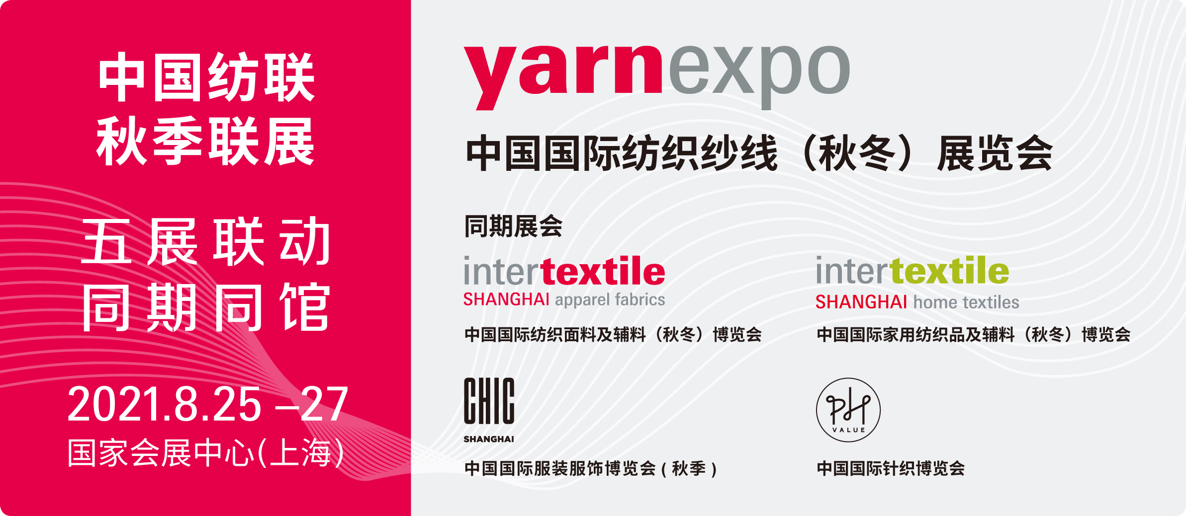 2021年8月25-27日,第18届yarnexpo中国国际纺织纱线(秋冬)展览会(简称2021yarnexpo秋冬纱线展)将在国家会展中心(上海),与intertextile面辅料展(秋冬)、intertextile家纺展(秋冬)、CHIC服装展(秋季)、PHValue针织展(秋冬)五展同期同馆举办。