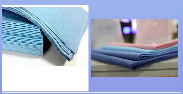 擦拭材料是非织造布的重要应用领域。非织造擦拭材料按照使用方式可分为干巾和湿巾,按照耐用性可分为一次性擦拭巾和半耐用擦拭巾,按照生产工艺可分为水刺擦拭巾、针刺擦拭巾、缝编擦拭巾、熔喷擦拭巾、纺粘擦拭巾、热粘合擦拭巾、化学粘合擦拭巾等。