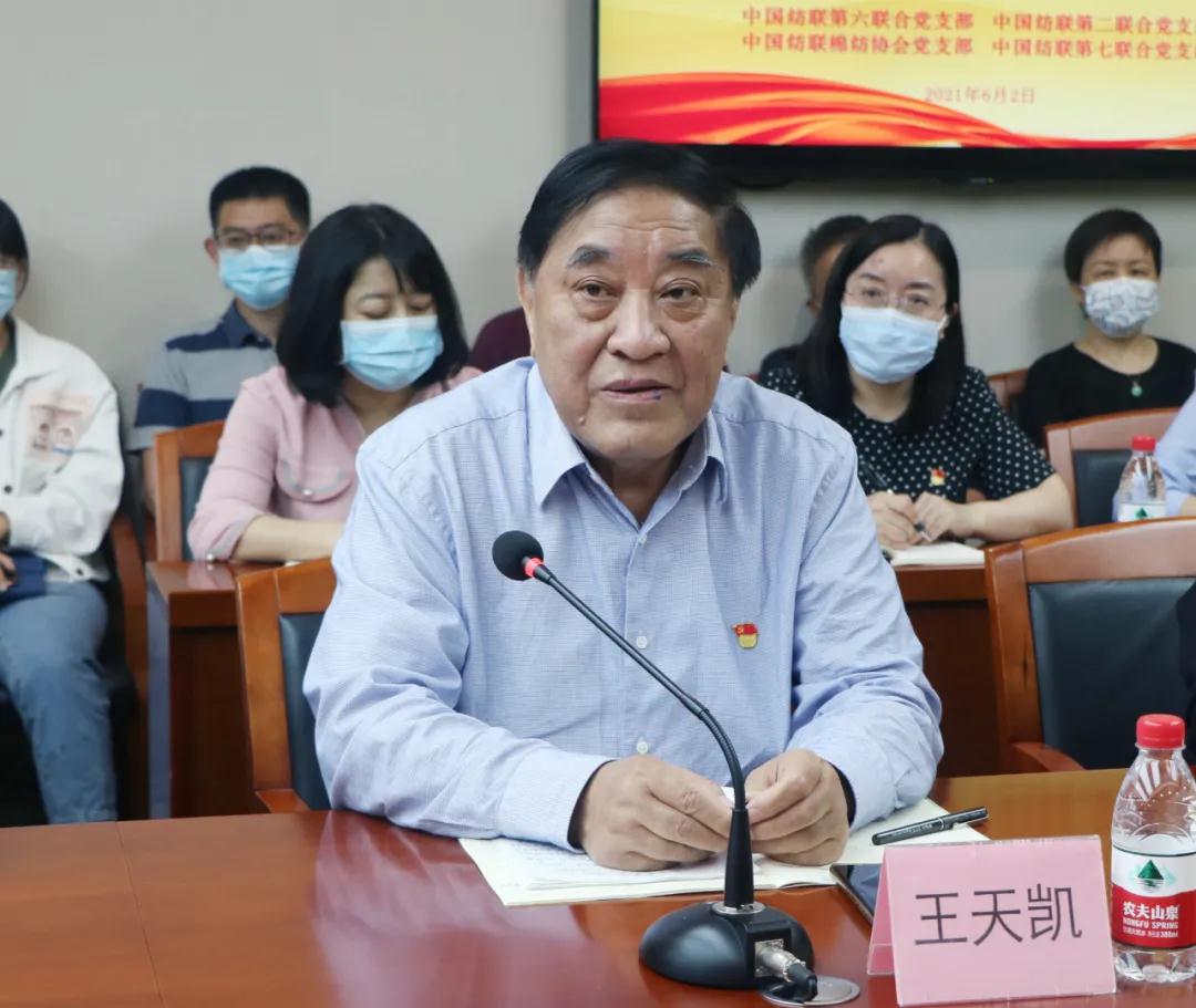 在中国共产党建党100周年之际,为更好地开展党史学习教育,使党史与行业发展史结合贯通,2021年6月2日,中国纺联原会长王天凯带来了一堂题为“永远跟党走”的主题党课,此次党课是由中共中国纺联第二、第六、第七联合党支部以及棉纺协会党支部共同举办,各党支部内单位的主要领导、全体党员、入党积极分子以及非党员领导干部共约50多人参加了此次党课学习活动。中国纺联副会长、第六联合党支部书记端小平主持此次党课。