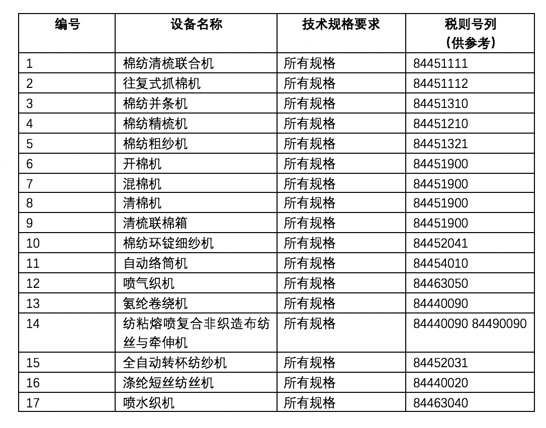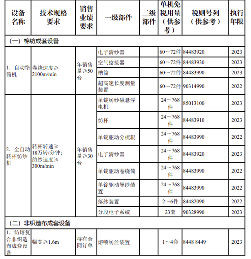 据工业和信息化部官网消息,结合国内外形势变化,工业和信息化部、财政部、海关总署、国家税务总局、国家能源局等五部门近期对重大技术装备进口税收政策有关目录进行了修订,并自2022年1月1日起执行,其中内容涉及棉纺成套设备、非织造布成套设备。