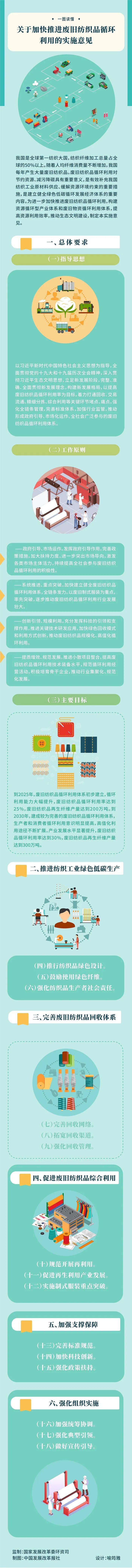 为进一步加快推进废旧纺织品循环利用,构建资源循环型产业体系和废旧物资循环利用体系,提高资源利用效率,近日,国家发展改革委、商务部、工业和信息化部联合印发《关于加快推进废旧纺织品循环利用的实施意见》(发改环资〔2022〕526号,以下简称《实施意见》)。