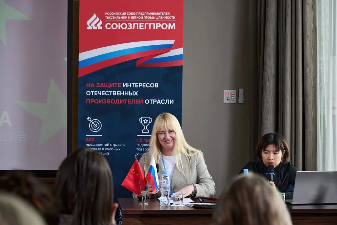 2024年6月4日,中俄纺织服装业商贸合作研讨会在莫斯科克拉斯诺塞利斯卡娅酒店举行,会议由SOUZLEGPROM副主席Alexsandra Sakaeva亚历山德拉?萨卡耶娃主持,SOUZLEGPROM主席Andrey Razbrodi安德烈?拉兹布罗丁作开场发言。随后Alexsandra Sakaeva介绍俄罗斯时尚产业的现状。中国纺织贸促会秘书长刘丽华陈述了中国纺织服装行业的现状以及中俄行业合作的前景。中国针织工业协会副会长李红说明了中国针织行业的情况,并对中俄贸易合作充满信心。