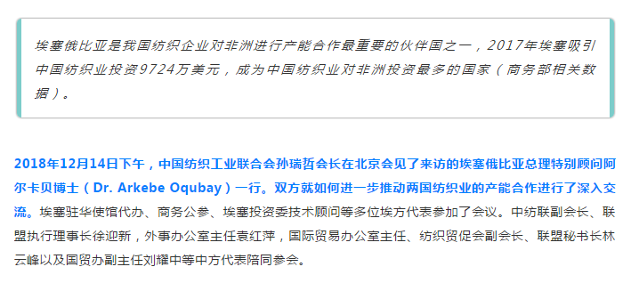 来源:中国纺织国际产能合作企业联盟 | 发布日期:2018-12-24