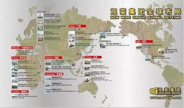 目前,旭荣集团在全球有7个营销据点、6个制造区、2个染整区、11个成衣厂、3个印染厂、4个织厂和2个研发中心。