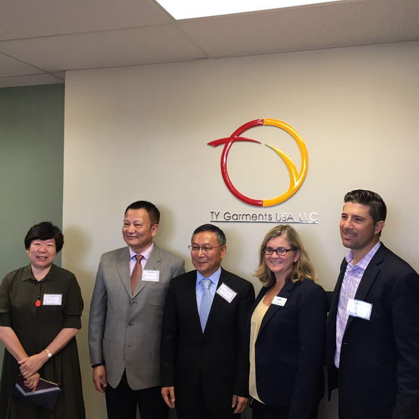 随后代表团一行奔赴小石城工业园,在天源董事长唐信宏陪同下,参观了天源服装公司美国厂区,并出席了天源服装公司与乔治亚理工大学签约仪式(历时13个月谈判,双方终于签署了战略合作协议、优惠服务条约、保密协议等四个法律文件)。