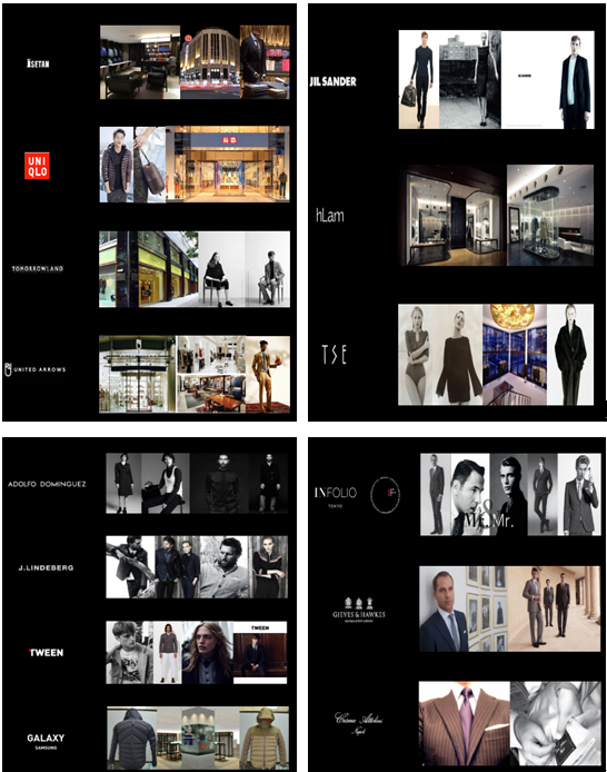 ◆服务过的品牌:概念店(伊势丹、优衣库、UNITED ARROWS),奢侈品牌产品(JIL SANDER、hlam、TSE),现代服饰品牌(ADOLFO DOMINGUEZ、J.LINDEBERG、TWEEN、GALAXY),男士正装品牌(INFOLIO、 GIEVES &HAWKES),针织品牌(altea,malo、Cruciani),纱线品牌(LoroPiana、CARIACGI)。