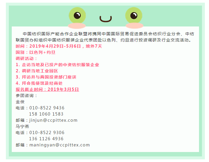 来源:中国纺织国际产能合作企业联盟 | 发布日期:2019-01-28