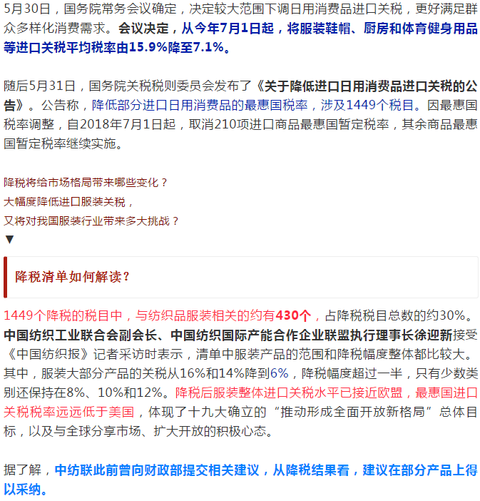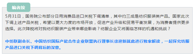 中纺联副会长、联盟执行理事长独家解读:纺服产品进口关税下调背后的深意
