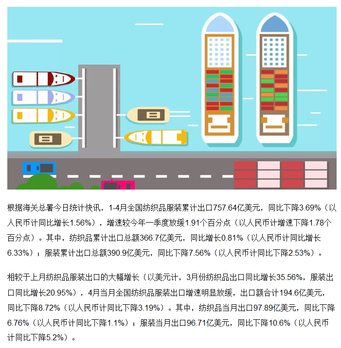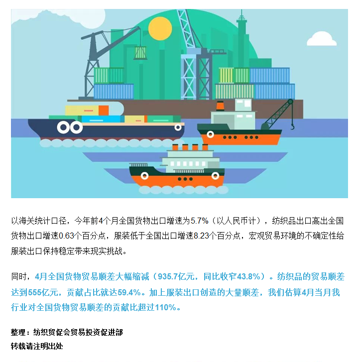 快讯丨4月纺织品服装出口增速放缓,行业贸易顺差贡献突出