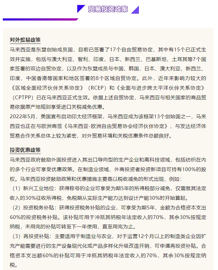 《2023纺织业对外投资合作国别指南》东南亚篇(四)——马来西亚