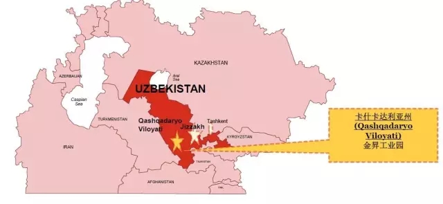 2014年10月签署投资协议,在乌兹别克斯坦建设纺织工业园,项目位于乌兹别克斯坦共和国卡什卡达里亚州卡尔希地区,项目投资总额为1亿美元,占地面积30公顷,项目已于2017年4月投产,项目投产后,可提供500个工作岗位,预计年产2.2万吨高级棉纱,其中用于出口的产品占总产量的80%。