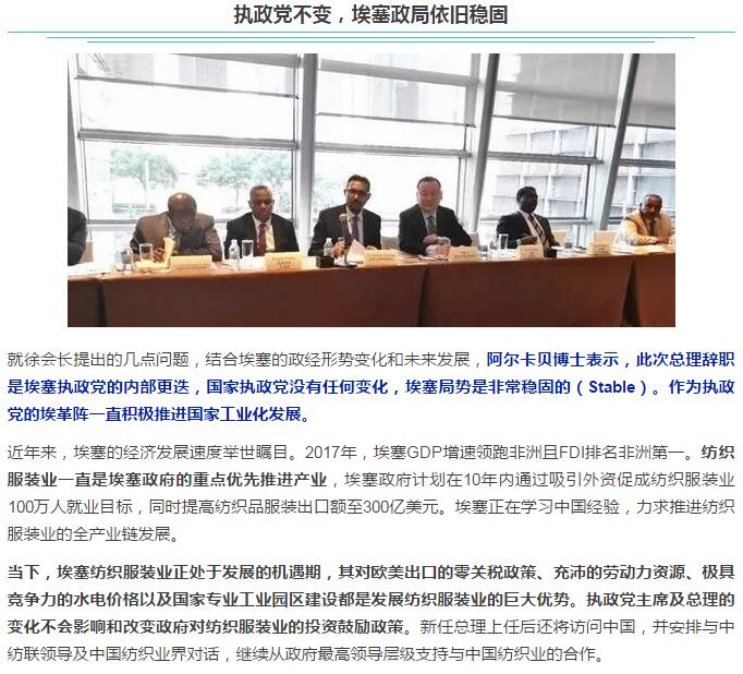 对话埃塞政府代表:埃塞总理更迭不会影响中国纺织业对埃投资