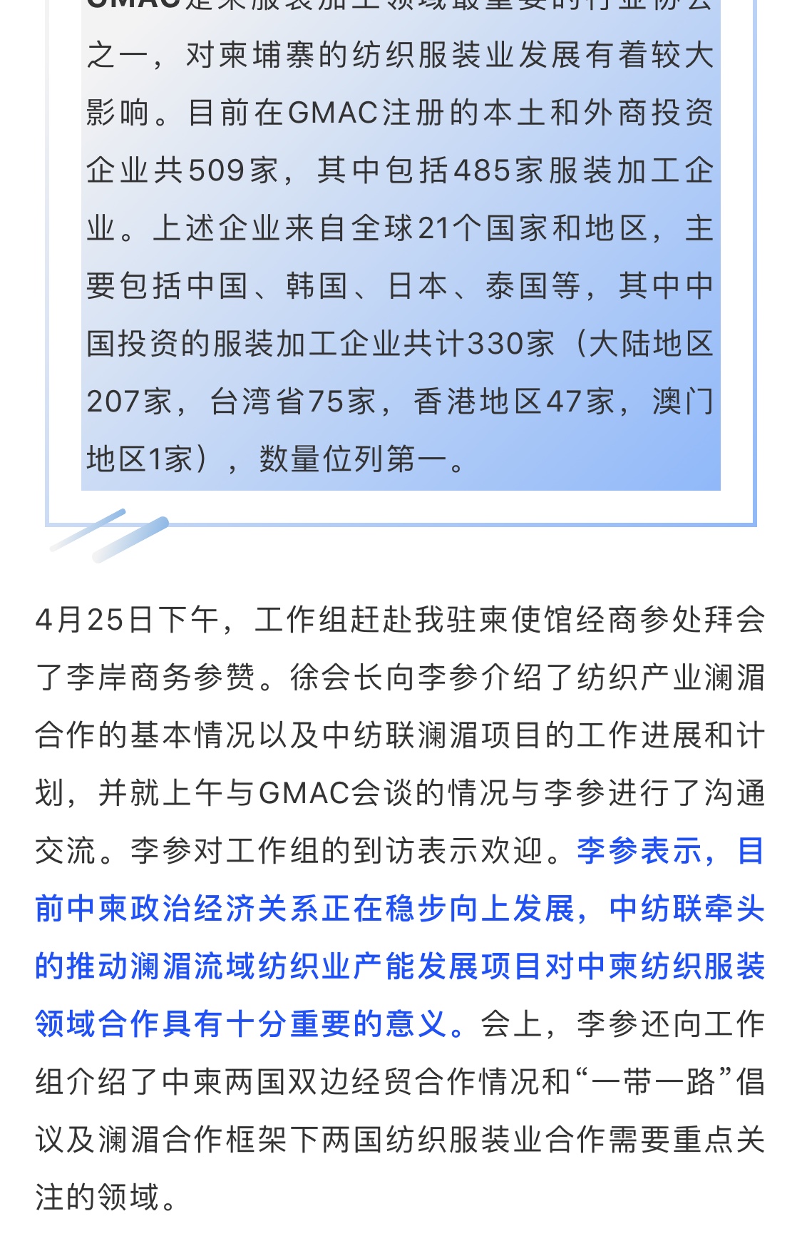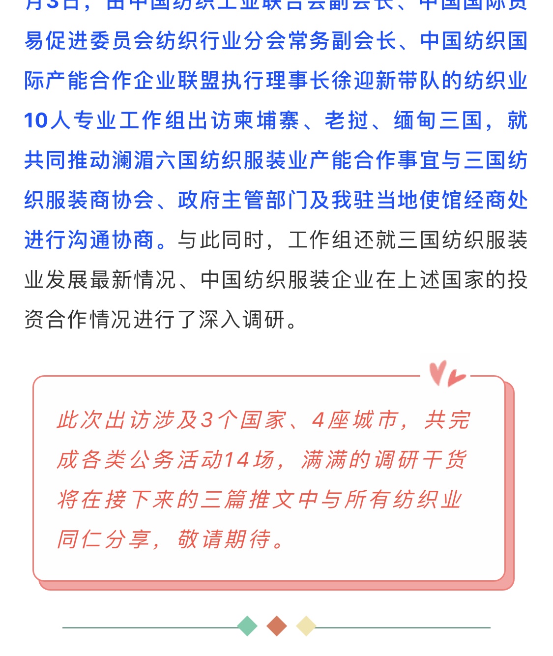 澜湄合作|纺织业澜湄合作正式启程——徐迎新执行理事长率工作组出访柬老缅(一)