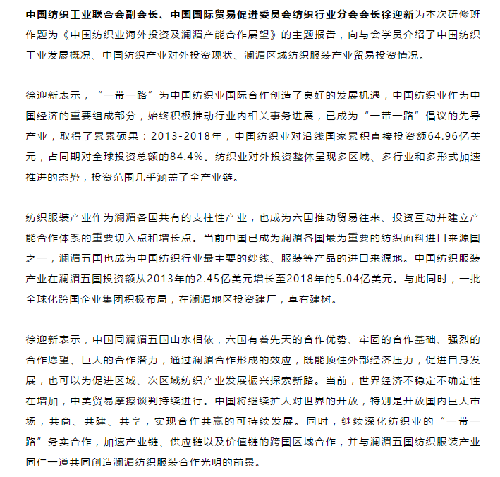 释放澜湄活力| 2019澜湄纺织服装产业发展高级研修班今日在沪开班