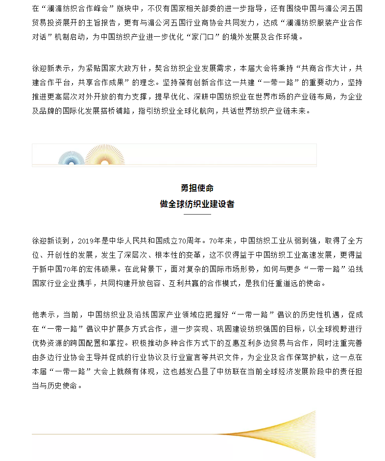 专访中纺联副会长徐迎新:与世界相连,绘就“一带一路”纺织画卷