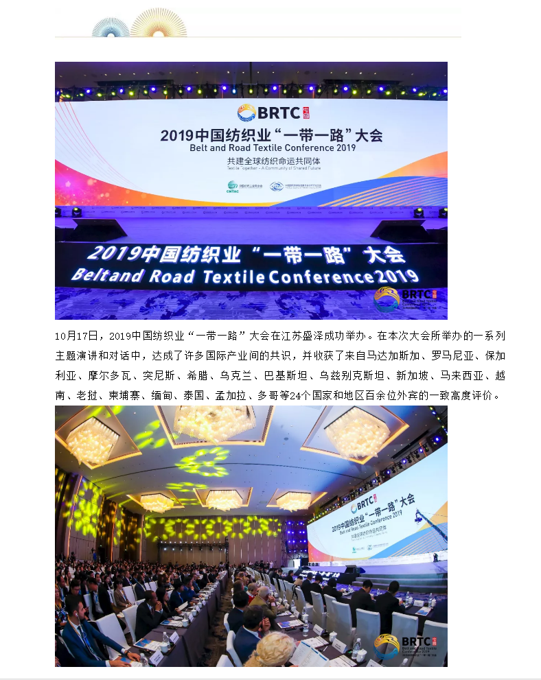 来源: 中国纺织国际产能合作企业联盟 | 发布日期:2019-10-18