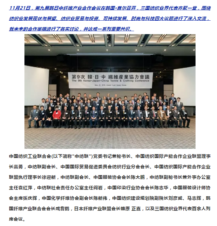 纺织头条 | 携手共进,推动中日韩纺织业合作迈上新水平!第九届韩日中纤维产业合作会议成功举行