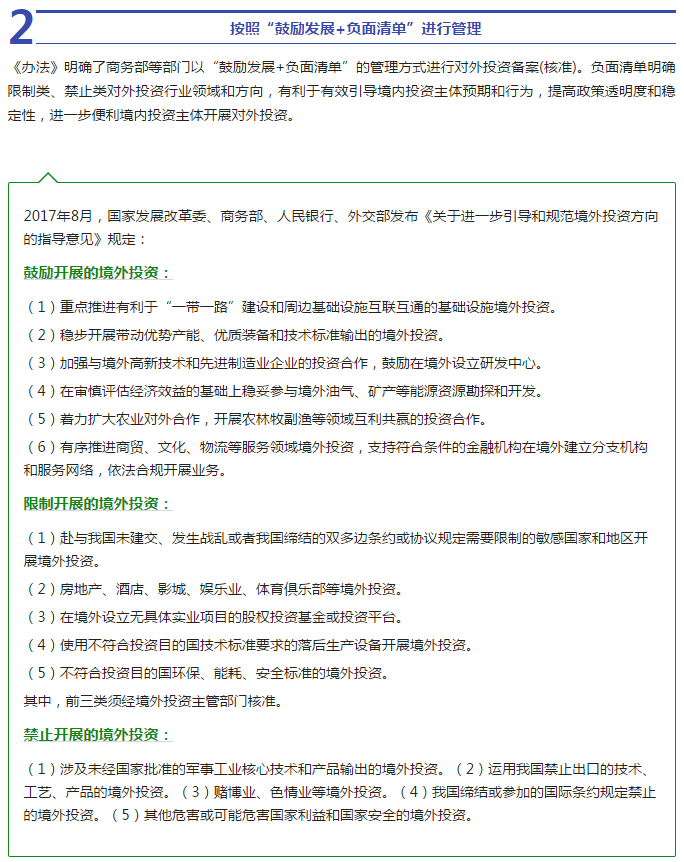 该《办法》作为引导和规范对外投资发展的一项重要基础性制度,商务部牵头制定了一系列具体举措:
